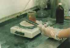 There is the silicon wafer in the center. The electric circuit are printed here. There are bonding wires around the silicon wafer. |